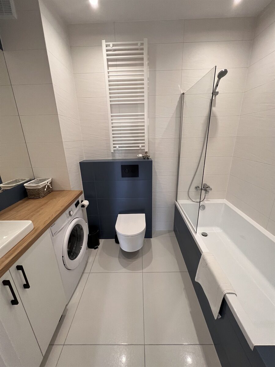 - Nowoczesna kuchnia wyposażona w piekarnik, płytę indukcyjną, zmywarkę, ekspres przelewowy oraz komplet naczyń i środków czystości, podstawowe przyprawy, cukier, kawa i herbata