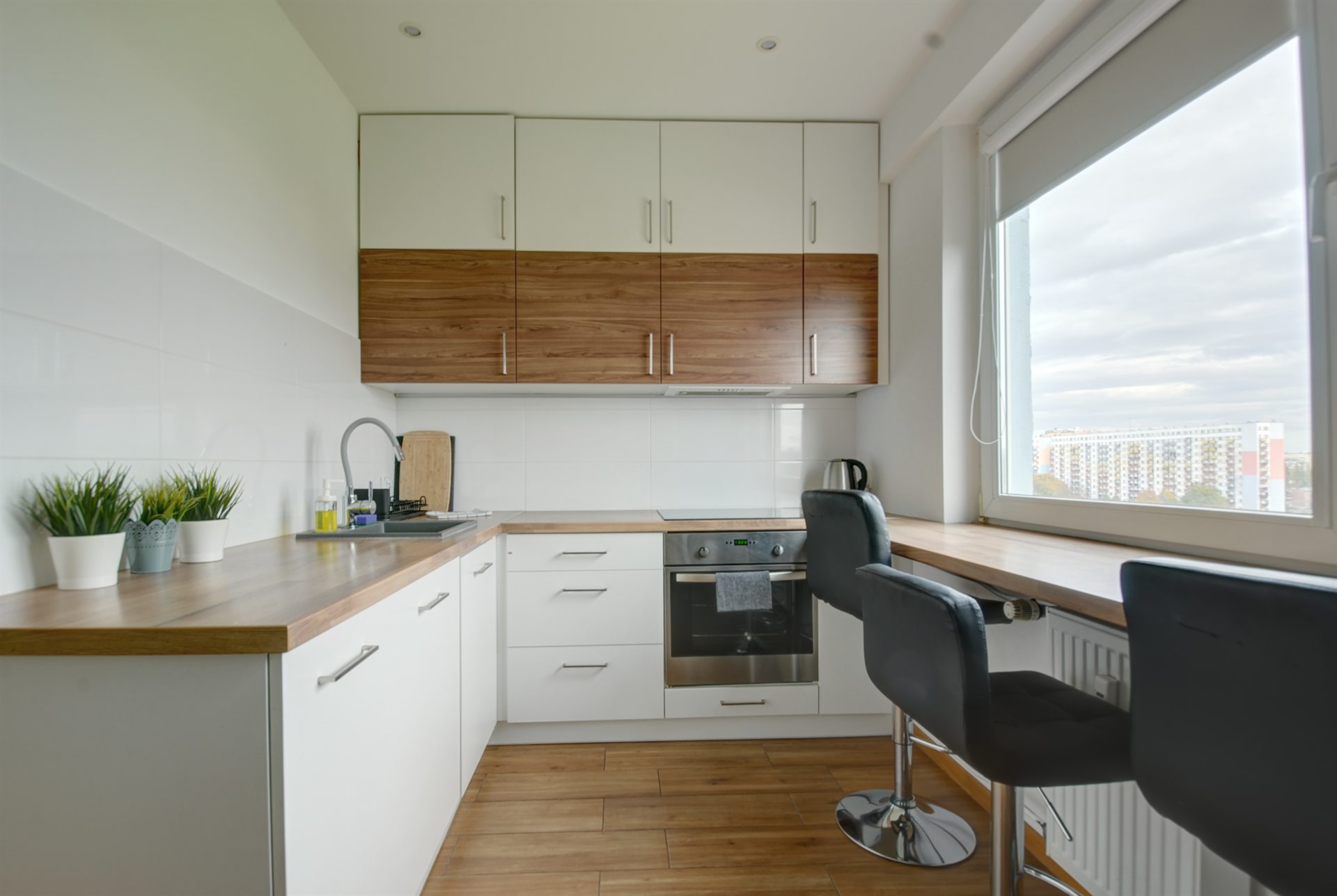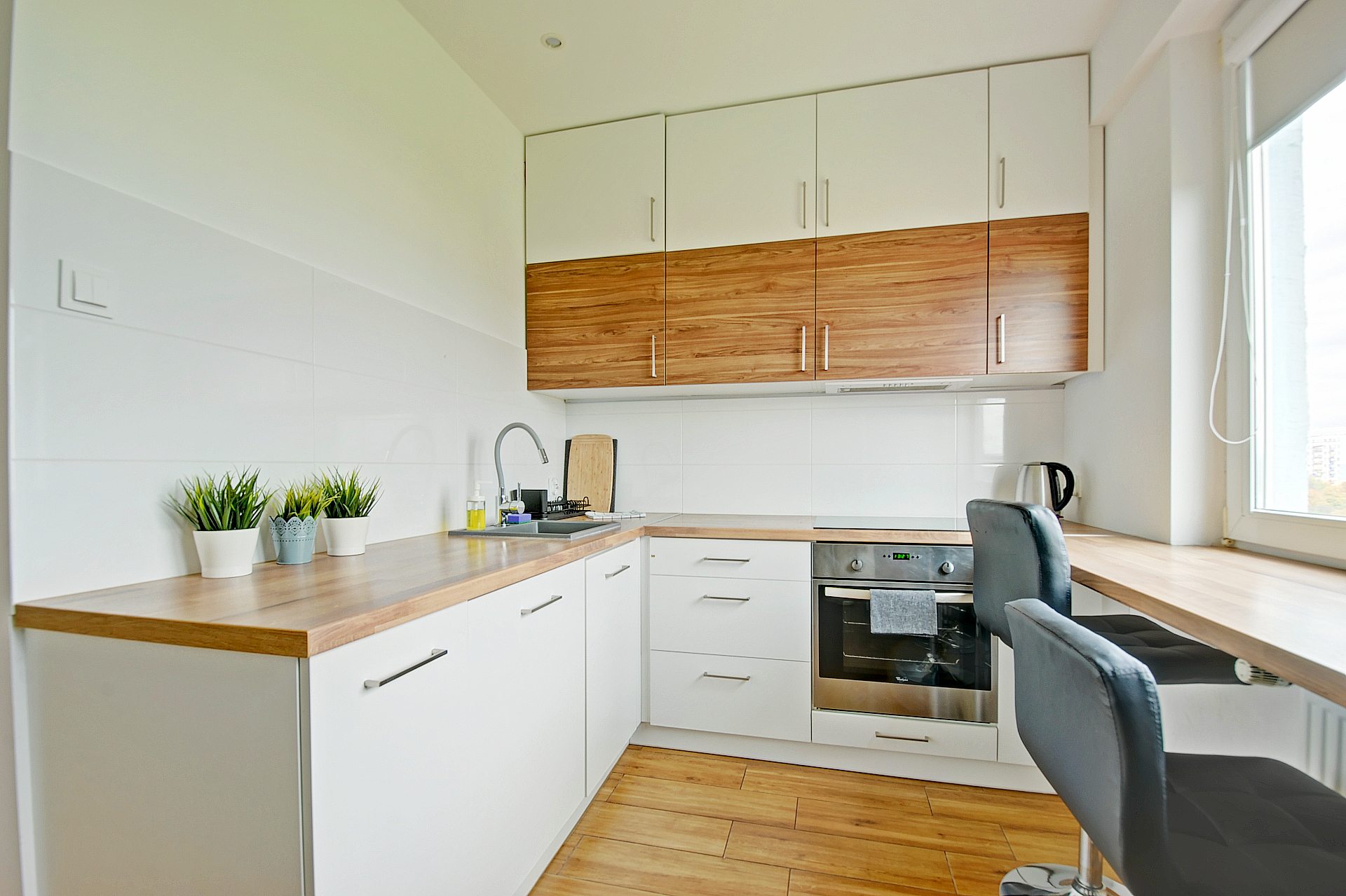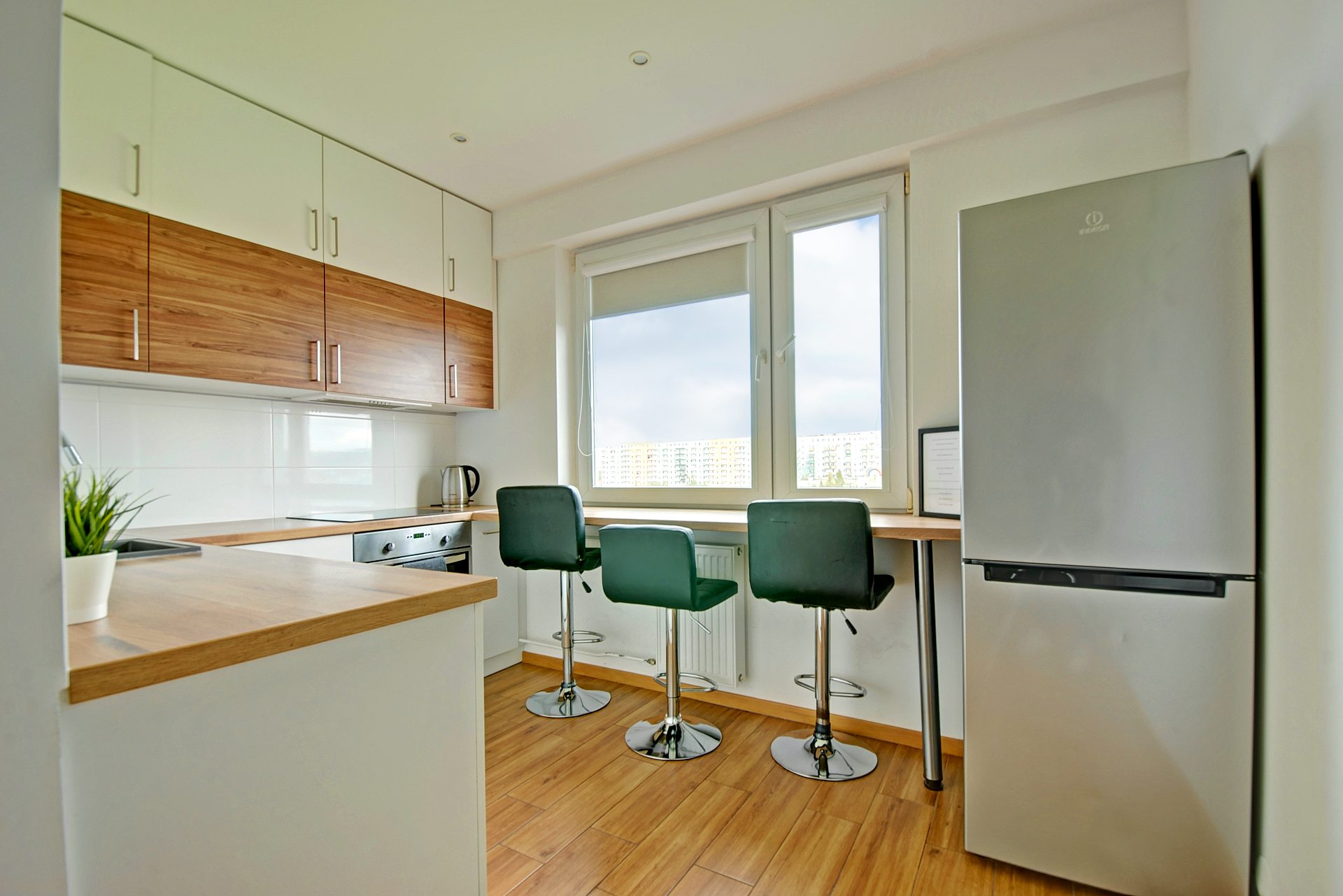 - W pełni wyposażona kuchnia – zmywarka, piekarnik, płyta indukcyjna, lodówka, czajnik, podstawowe przyprawy, cukier, kawa i herbata